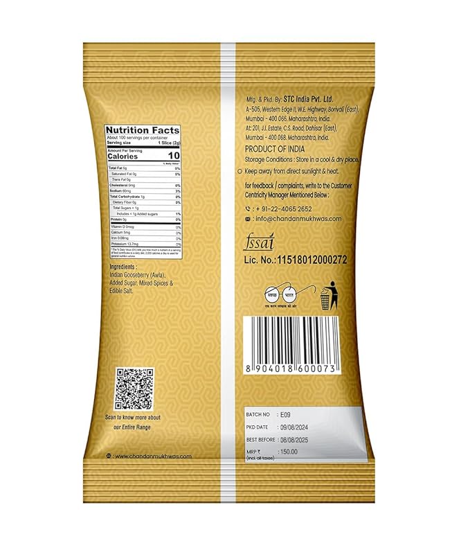 - Indian Gooseberry (Awla), Added Sugar, Mixed Spices & Edible Salt.